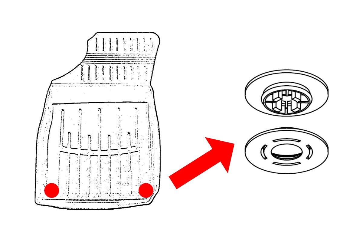 - Väčšina modelov podlahových kobercov vodiča je vybavená podložkou ľavej nohy vodiča