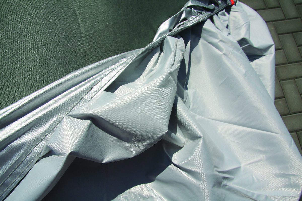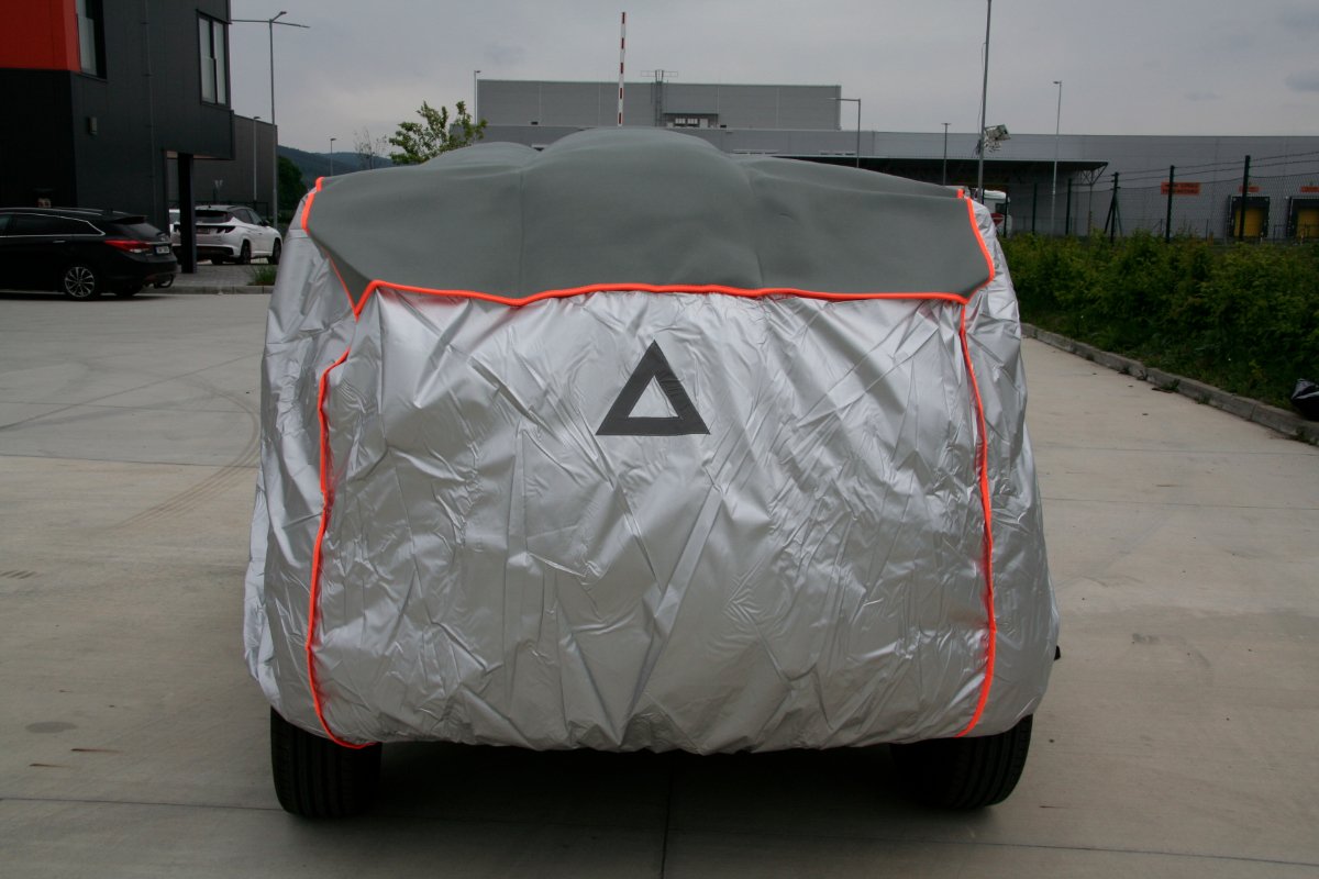 Plachtu je jednoduché nasadiť a vďaka trom všitým popruhom a elastickým okrajom pevne drží na mieste. Reflexné značky vpredu, vzadu aj po stranách zaisťujú lepšiu viditeľnosť a bezpečnosť zaparkovaného vozidla.