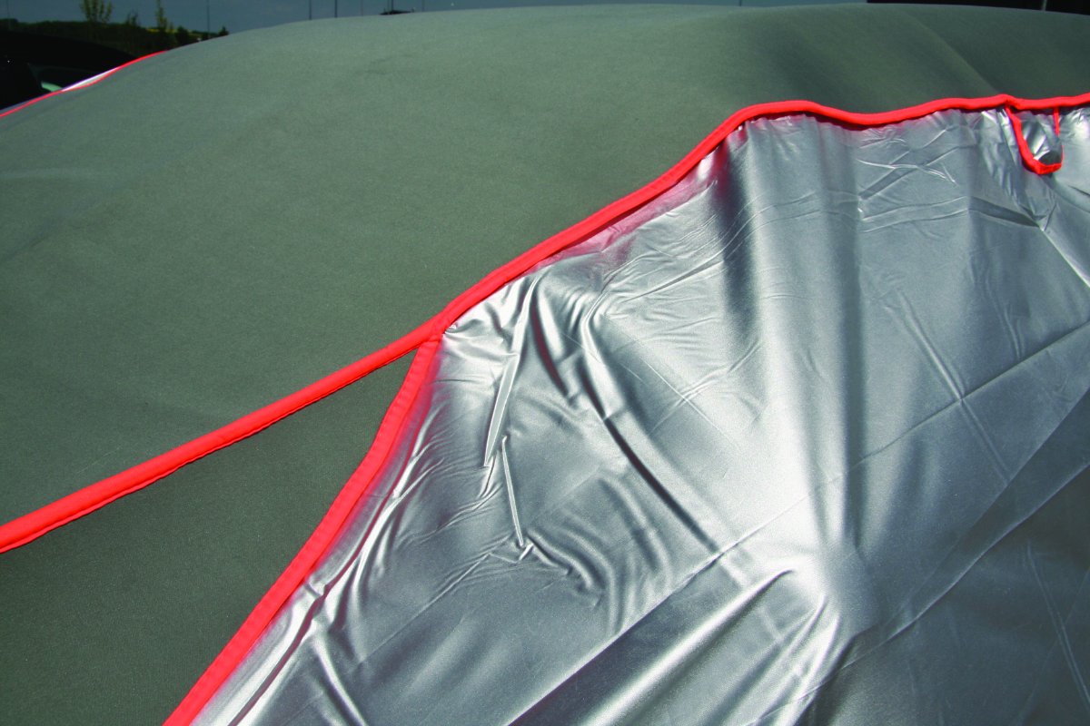 Prémiová ochranná plachta určená na celoročné používanie. Spoľahlivo chráni vozidlo pred extrémnymi poveternostnými vplyvmi, ako sú krupobitie, silný dážď či sneh. Vystužená horná časť s 5 mm neoprenovou vrstvou efektívne absorbuje nárazy krúp s veľkosťou do 12 mm pri rýchlosti do 74 km/h.