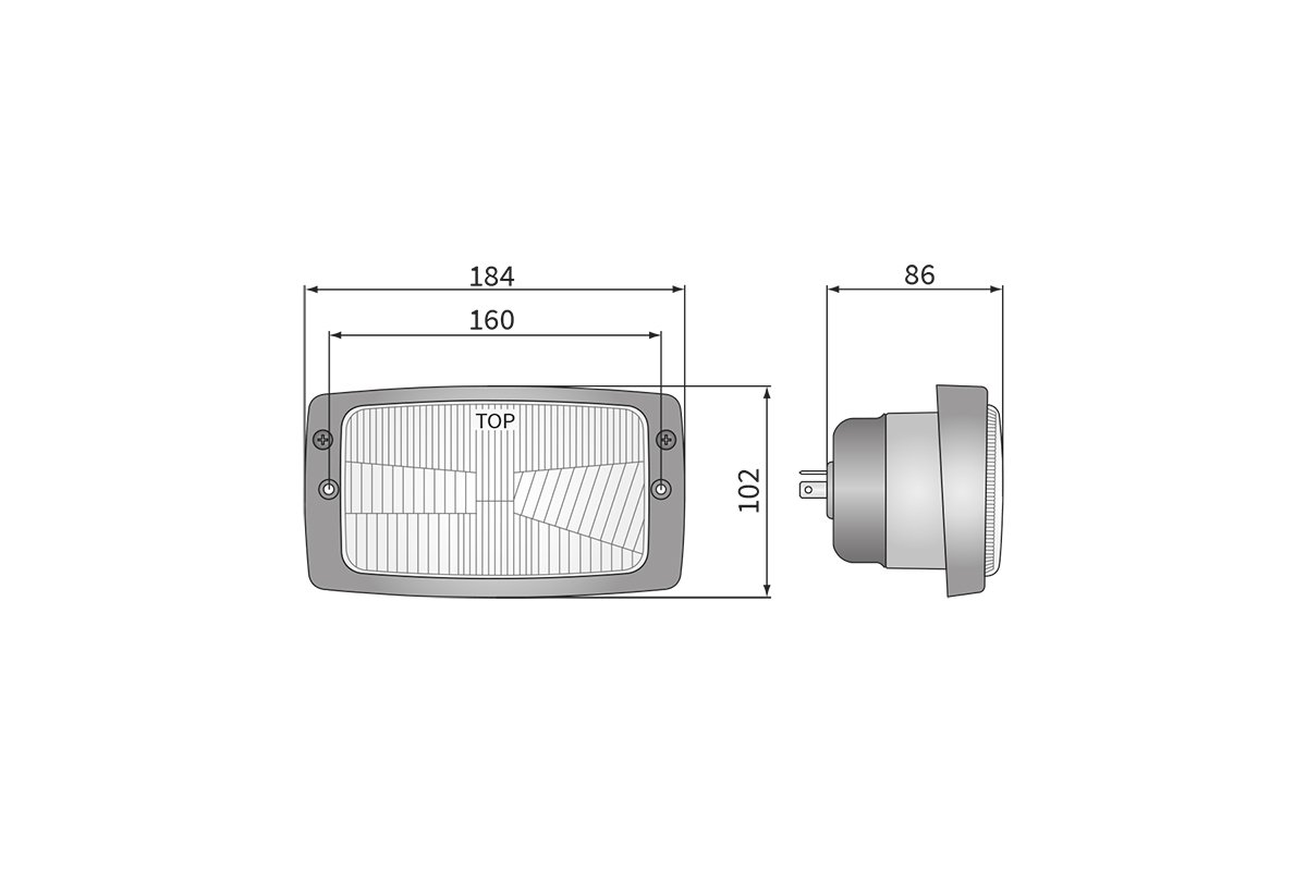 Svetlo je chránené pred prachom a striekajúcou vodou vďaka krytiu IP54. Napäťový rozsah 12–24 V DC umožňuje univerzálne použitie v osobných, úžitkových aj pracovných vozidlách. Vďaka kompaktným rozmerom 184 × 102 × 86 mm sa ľahko inštaluje do bežných reflektorových systémov a svetelných zostáv.