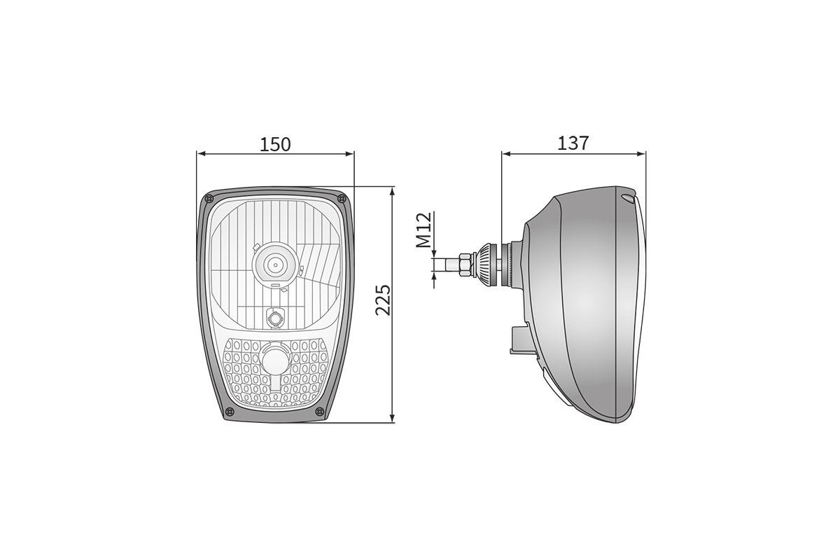 Predné svetlo WESEM RGV1.49020 univerzálne 4-funkčné svietidlo. Žiarovky: H4, W5W, PY21. Rozmery: 225 × 150 × 137 mm. Krytie: IP66. Príkon: 75/70 W + 5 W + 21 W.