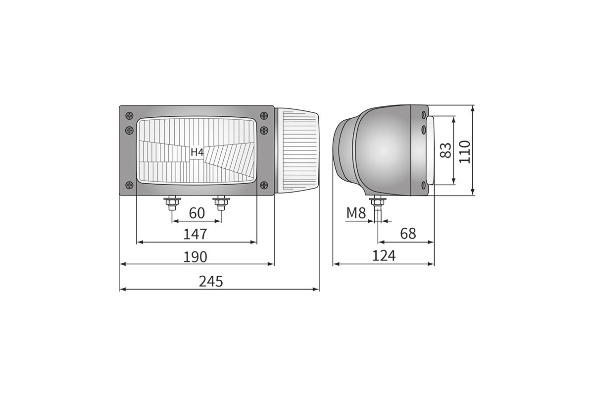 Ľavé predné svetlo WESEM REPR1.24258 je spoľahlivé 4-funkčné svietidlo pre traktory a pracovné stroje. Kombinuje tlmené, diaľkové, polohové a smerové svetlo. Používa žiarovky H4, T4W a P21W. Rozmery: 246 × 110 × 124 mm.